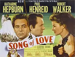 Song of Love is a 1947 American biopic film about the relationship between renowned 19th-century musicians Clara Wieck Schumann (Katharine Hepburn) and Robert Schumann (Paul Henreid). The film, which also stars Robert Walker and Leo G. Carroll, was directed by Clarence Brown and released by Metro-Goldwyn-Mayer. Ivan Tors, Irma von Cube, Allen Vincent, and Robert Ardrey co-authored the screenplay, which was based on a play by Bernard Schubert and Mario Silva.