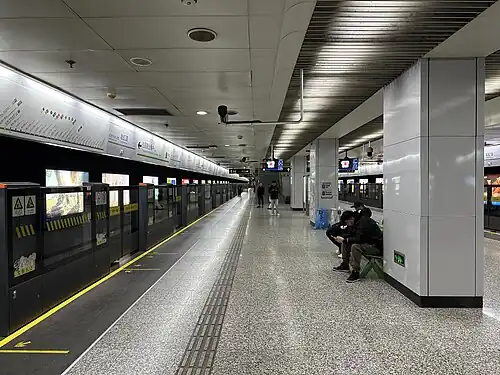 Songhong Road (Chinese: 淞虹路; pinyin: Sōnghóng Lù) is a station on Line 2 of the Shanghai Metro in Changning District.[1] The station served as the western terminus of the line from 30 December 2006, when Line 2 was extended westward from Zhongshan Park,[2][3] until 16 March 2010, when the second westward extension to the current terminus at East Xujing opened.[2][4] The station is still often used as a terminus for west-bound trains meaning passengers have to disembark and wait for another train for the remainder of the journey.