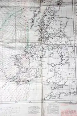 Whereas Orfordness required this delay to be timed on a clock, Sonne keyed the signal once per second, allowing the timing to be captured simply by counting the number of dots or dashes. To make this process even easier, a series of nautical charts were produced with the counts listed on them. The navigator simply looked up the number on the chart to reveal the bearing.[11]