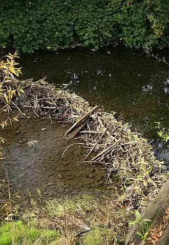 ![]() Beaver dam on Sonoma Creek at Maxwell Farms Regional Park in Sonoma, California, 2009 | |