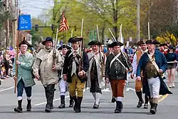 Sons of the American Revolution march in the 2025 Patriots' Day parade in Lexington, Massachusetts