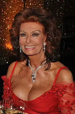 Sofia Costanza Brigida Villani Scicolone (Italian: [soˈfiːa vilˈlaːni ʃʃikoˈloːne]; born 20 September 1934), known professionally as Sophia Loren (/ləˈrɛn/ lə-REN,[1] Italian: [ˈlɔːren]), is an Italian actress, active in her native country and the United States. With a career spanning over 70 years, she is one of the last surviving major stars from the Golden Age of Hollywood cinema.[2]