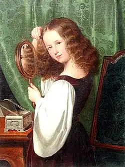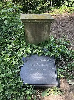 In Düsseldorf, they lived at Hofgartenstraße 8 until the early 1860s, also the death house of their father in 1862. Later, they had a house at Goltsteinstraße 24.[2] Direct neighbours at the end of the 19th century were the family of the painter Karl Rudolf Sohn and the Else Sohn-Rethel. The older sculptor August Wittig lived in the Hasenclevers' house and around 1880 the painter Hermann Schmiechen.[3] Here she and her husband ran a künstlerisch-literarischen Salon where many greats of the time came and went, among them the poet Karl Immermann and Gottfried Keller, as well as the composers Ferdinand Hiller, Robert Schumann and the composer and pianist Clara Schumann. The painter Carl Gehrts found social connections in the circle of the writer Hasenclever.