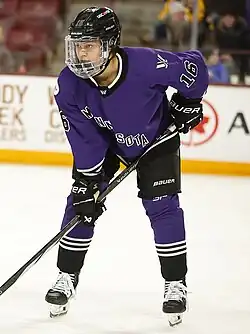 During the 2019–20 season in her sophomore year, she recorded nine goals and 15 assists in 38 games.[6] She ranked third in the conference for defenceman scoring, led all defenceman with 131 shots on goal, and ranked second on the team with 58 blocked shots. Following the season she was named to the All-WCHA Third Team.[7] During the 2020–21 season in her junior year, she recorded two goals and two assists in a season that was shortened due to the COVID-19 pandemic. She led all WCHA defenceman with 54 shots on goal and led the team with 33 blocked shots.[6]