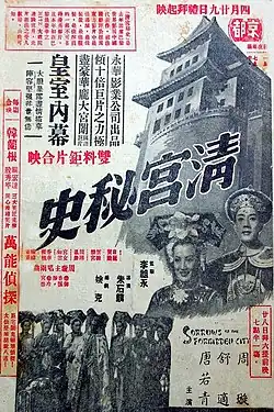 Sorrows of the Forbidden City (Chinese: 清宮秘史; pinyin: Qīng gōng mìshǐ; lit. 'Secret History of the Qing Court') is a Mandarin Chinese film released in 1948. It was directed by Zhu Shilin and filmed in Hong Kong.[2] After the founding of the People's Republic of China in 1949, the film was criticized as "treasonous" for its positive depiction of the Emperor.[3][4] However, its reputation has risen in recent years, and it was ranked as the 37th best Chinese film of all time in the Hong Kong Film Awards poll of 2013.[5]