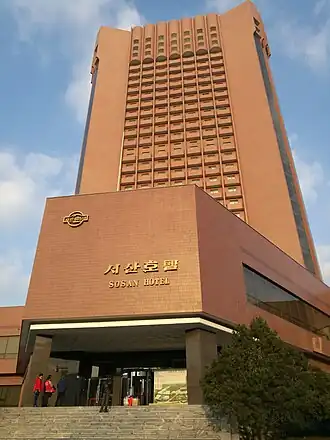 The Sosan Hotel (서산호텔) is a hotel located in Pyongyang, North Korea.[1][2] It has a height of about 338.28 feet (103.11 m), with 30 floors and 510 rooms.[3] It was built in 1989.[4] Located roughly 4 kilometres (2.5 mi) from the railway station,[5] it is run by the sports tourism company of North Korea.[6] The hotel has a golf range.[7]