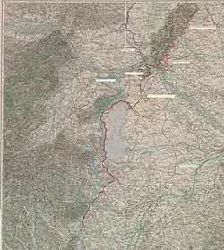 The South-east wall (German: Südostwall) (also known as Reichsschutzstellung) was a system of fortifications planned by Nazi Germany in the late stages of World War II to extend along the Little Carpathians and Lake Neusiedl southwards to the River Drau.[1] Not a wall in the true sense of the word, the South-east wall was rather a series of German batteries and anti-tank ditches built at strategic locations alongside the southeastern border of the German Reich in 1944/45 with the intention of stopping the Red Army.