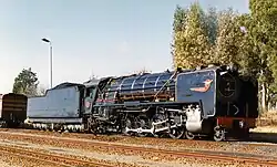 The Class 15F 4-8-2 Mountain type steam locomotive was designed by W.A.J. Day, Chief Mechanical Engineer (CME) of the South African Railways (SAR) from 1936 to 1939, based on the design of the Class 15E by his predecessor, Allan Griffiths Watson, and later modified again by his successor, M.M. Loubser. It was built in five batches by four locomotive manufacturers in Germany and the United Kingdom over a period of ten years spanning World War II.[2][4]