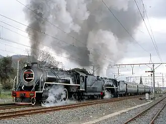 The two Mountain types, which arrived from the same builders in the same shipment, were designated Class 15C. The Classes 16D and 15C were specially designed for working the Union Limited (Johannesburg to Cape Town) and Union Express (Cape Town to Johannesburg) passenger trains, the forerunners of the Blue Train.[1][2][3][4]