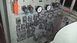 The locomotive is controlled via resistors over which the voltage is dropped in a configuration of series and parallel electrical circuits. The circuit breakers which switch these circuits, work under very high power and voltage and are all pneumatically operated for insulation purposes. Compressed air is required to open or close the switch actions and air is also used for the weak field Cam Switch, which also switches under very high currents.[7]