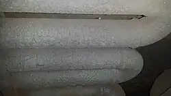 When Class 6E1, Series 7 and earlier locomotives began to be rebuilt, it was necessary to retrofit them with a brake equipment frame or brake rack. Since this already increased the per-unit rebuilding cost, it was decided to simultaneously re-route the compressor pipe away from bolster and other members to the outside of the bodywork on the locomotive's right side, from below and to the right of the cab door to just before the second sandbox lid from the rear end. An added advantage was that the pipe would run cooler and more moisture would condense on the way to the reservoirs. The same modification was not done on locomotives which were rebuilt from Class 6E1, Series 8 and later.[3]