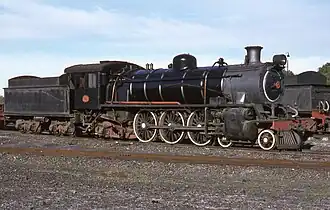 The CGR's Enlarged Karoo, designed by H.M. Beatty, the Cape Government Railways Chief Locomotive Superintendent and built by Vulcan Foundry of Newton-le-Willows, was one of the locomotive types which were designed and ordered before the SAR was established and which ended up being delivered to the newly established national railways of the Union of South Africa. The locomotives were designated Class 5 and numbered in the range from 780 to 783. They entered service during November 1912.[1][2][3]