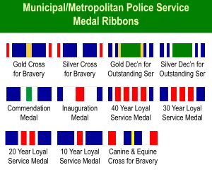 In 1998, the municipal and metropolitan council police forces were brought under the auspices of the SA Police Service Act, and became collectively known as the Municipal/Metropolitan Police Service. A series of decorations and medals was instituted for them in 2008.