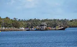 The Burns Point Ferry discharging vehicles at South Ballina, August 2025