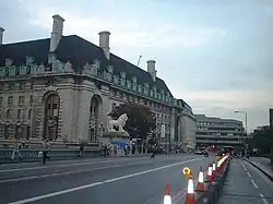 The South Bank Lion is an 1837 sculpture in Central London. Since 1966 it has stood next to County Hall, on the South Bank of the River Thames. It is a significant depiction of a lion, along with the four that surround Nelson's Column in Trafalgar Square just across the river.