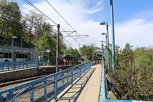 South Bank is a station on the Overbrook branch of the Port Authority of Allegheny County's light rail network. It is located in the Overbrook neighborhood of Pittsburgh, Pennsylvania. The station is a major transit facility, serving as not only a light rail stop but also as a bus stop along the South Busway, a bus rapid transit route. The station is also designed to serve the crowded and mostly residential community that surrounds the site.