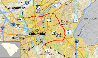 South Carolina Highway 16 (SC 16) is a 9.6-mile-long (15.4 km) primary state highway in the U.S. state of South Carolina that exists mostly within Columbia in Richland County. Its routing is in a backward C-shape.
