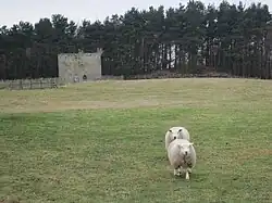 Two miles (3.2 km) south-east of the village, on the slopes of Heifer Law, is Heiferlaw Tower, a ruined fifteenth-century pele tower built by the monks of Alnwick Abbey.[3]