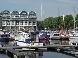 Although most of the Surrey Docks were infilled and converted to residential, commercial or light industrial land, South Dock escaped this fate. The former warehouses were demolished and replaced with residential blocks, while the dock itself was refurbished. Residential development in the area received funding from the London Docklands Development Corporation, erecting unique buildings, such as Baltic Quay. In 1994, South Dock reopened as London's largest marina, with over 200 berths.[1] It is now largely occupied by yachts and residential barges.