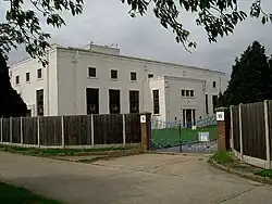 When built, the Langford pumping station contained two triple-expansion steam engines, with room for a third, which was fitted in 1931.[8] There were used in pairs, and each drove a low lift pump to transfer water to the treatment works, and a high lift pump to take treated water and pump it along a 28-inch (71 cm) cast iron pipe to Southend. The pipe crossed below the River Crouch at Hullbridge, where shafts were built on either side of the river, and a tunnel was constructed between them. The water main is formed of twin steel tubes within the tunnel. The Oakwood storage reservoir was constructed in Bramble Crescent, Hadleigh (51°33′53.3″N 0°37′43.4″E / 51.564806°N 0.628722°E). This was supplied with water from Langford, firstly by the 28-inch main and later by an additional 32-inch main. Oakwood (elevation 65 metres) was the main storage reservoir supplying treated water to Southend by gravity. Additional storage reservoirs were added at Oakwood, increasing the capacity to 17 million gallons (77.2 Ml).[9] The engines were normally worked in pairs, and a pair could deliver 8 million imperial gallons (36 Ml) per day. In August 1927, water from the Chelmer started to be used, and between then and 1945, 96 per cent of the water supplied by Southend Waterworks came from Langford. The wells and boreholes were maintained, to provide a backup supply when necessary.[3]