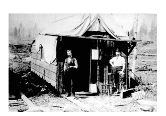 The Hotel Northern wasn't the only business making a fortune from railway construction. At least four brothels were built in South Fort George during this era and one Madam, Irene Jordan, did so well that she decided to expand her business into Central Fort George and built a large house there, the first two-piano brothel in Northern British Columbia.[4] However, it turned out that Central Fort George did not want a brothel in their town and it was shut down by Police Chief Dunwoody. But the story would not end there. Undeterred, Miss Jordan had the new brothel skidded over to where the Prince George townsite was being built and the house was later rented by Prince George's first mayor, WG Gillette, to be the Prince George City Hall. Another public outcry erupted and the local newspaper editors had a grand time making jokes and drawing cartoons about this arrangement, until the mayor and the city council moved out into a new City Hall.[5]
