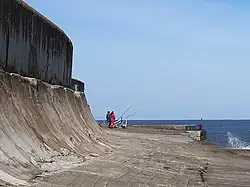 As well as those out for a stroll other activities indulged in include sea fishing from small boats and angling from the concrete breakwater, photography of wildlife and shipping etc., also birdwatching,[24] sailing, kite surfing, windsurfing, jet-skiing, diving and motorcycling.[25]
