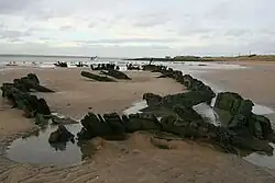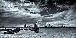 On the inner side of the breakwater is Bran Sands known for its bird life and the wooden wreck of a ship in the sands. A number of underwater wrecks lie off South Gare.[21]