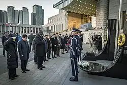 … About 37,000 Americans lost their lives. They fought for the freedom of Koreans they did not even know, and thanks to their sacrifices, the peace and democracy of the republic were protected. … On this significant occasion, all Koreans pay tribute to the heroes fallen in defense of freedom and democracy. I firmly believe that future generations in both countries will further advance the strong Republic of Korea–U.S. alliance into one befitting the spirit of the new age.[15]