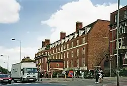 In 1998 Tesco attempted to win permission to demolish the hospital to the ground and replace it with a tower block of flats and a new store but this was strongly contested by Lambeth Council, local residents and amenity groups at a major public inquiry. Lambeth and the Clapham residents won their fight and Tesco agreed to retain Cooper's frontage of 1929.[10] In 2004 the Cooper building was refurbished and the missing pavilion was finally completed, 75 years after the original building was opened. This, and the removal of the awkward ambulance entrance ramp and clumsy porch, which was replaced by an elegant flight of steps with classical balustrade designed by leading conservation architect Giles Quarme, improved the appearance of this landmark. English Heritage refused to list the building so Lambeth was unable to save the interiors including an Elizabethan style wooden staircase, fine panelled Board Room and the Outpatients waiting hall with chequer-board floor and barrel vaulted ceiling which were all destroyed. The frontage block was converted into flats above a Tesco supermarket and the ward blocks behind were all demolished to build a new block of flats with large car park for Tesco.[4][5][11]