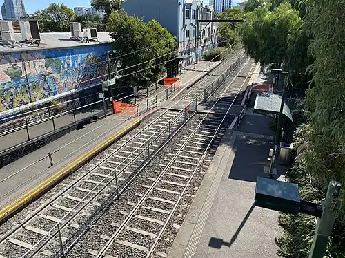 ![]() Photo from bridge over South Melbourne railway station of the station | ||||||||||||||||||