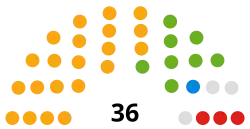 Since the last full review of boundaries in 2015, the council has comprised 36 councillors representing 21 wards, with each ward electing one, two or three councillors. Elections are held every four years.[26]