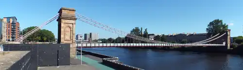 The South Portland Street Suspension Bridge is a suspension-type footbridge across the River Clyde in Glasgow, Scotland linking the City Centre on the north side to the Laurieston and Gorbals districts on the south side.