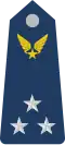| Trung tướng | Thiếu tướng | Chuẩn tướng | Đại tá | Trung tá | Thiếu tá | Đại úy | Trung úy | Thiếu úy | ||||||||||||||||