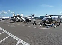 Southampton Airport has one main ground handler, Swissport (Servisair), who took over from Aviance. They handle all passenger services and apron operations for all airlines except for Aurigny Air Services who operate their own ground handling.[29]