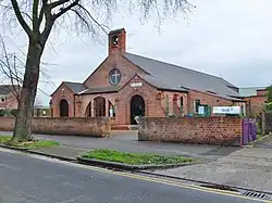 Other secular, charitable and religious establishments in the first half of the 20th century included: Four almshouses built c. 1907 funded by Eleanor Scott's Charity, with a further three houses were built in the 1930s.[30] A temporary church (Rosmead Street) opened in 1919, but burnt down in 1923; and a permanent replacement 'St John the Evangelist' built 1925, damaged during the Hull Blitz (1941) and reopened in after repairs (1952).[52][map 20][note 3] The Catholic 'Church of the Sacred Heart' was established on Southcoates Lane in 1929,[map 21] and the Sisters of Mercy Catholic religious order moved to a new convent on Southcoates Lane, built in 1931.[53][map 22]