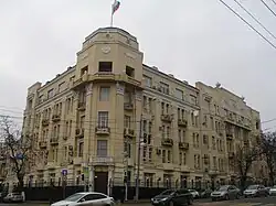 The Order of the Red Banner Southern Military District (Russian: Южный военный округ, romanized: Yuzhnyy voyennyy okrug) is a military district of Russia. It is one of the five military districts of the Russian Armed Forces, with its jurisdiction primarily within the North Caucasus region of the country, and Russian bases in South Caucasian post-Soviet states. The Southern Military District was created as part of the 2008 military reforms, and founded by Presidential Decree №1144 signed on September 20, 2010, to replace the North Caucasus Military District, and absorbing the military commands of the Black Sea Fleet and Caspian Flotilla.[3][4] The district began operation on October 22, 2010, under the command of Colonel-General Aleksandr Galkin.