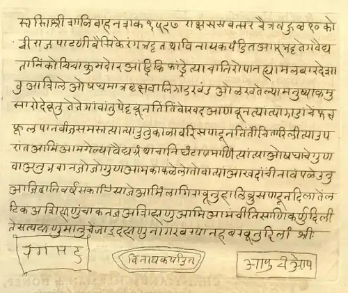 The earliest known Konkani epigraphy is claimed to be the rock inscription at Shravanabelagola, Karnataka. However, the claim is disputed since as per many linguists its language is indistinguishable from that of the Old Marathi literature from the Yadava era (1200–1300 CE)- the language is nearly identical, the script is early Devanagari, so it only makes sense to call it Marathi and not Konkani. This has always been a heated debate between Marathi Speakers and Konkani Speakers. Another writing of antiquity is a रायसपत्र Rāyasapatra (writ) By Srimad Sumatindra Tirtha swamiji to his disciples.