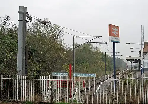 Southminster railway station is the northern terminus of the Crouch Valley line, which provides generally hourly stopping services to Wickford. Some early-morning peak services continue beyond Wickford to London Liverpool Street. Trains are operated by Greater Anglia.[4]