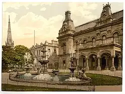 Southport is located within the historic county of Lancashire, and was incorporated as a municipal borough in 1866. It became a county borough independent of the administrative county of Lancashire in 1905,[29] having reached the minimum 50,000 population (the 1911 census gave a figure of 51,643). The Birkdale Urban District, including the parishes of Birkdale and Ainsdale was added to Southport in 1912. The county borough had its headquarters at Southport Town Hall.[30]