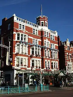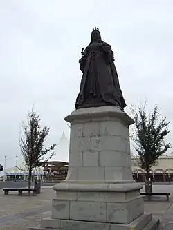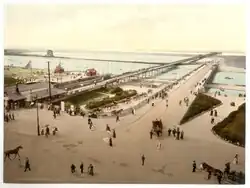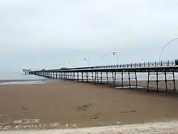 The town was founded in 1792 by William Sutton, an innkeeper from Churchtown, who built a bathing house at what is now the south end of Lord Street.[5] The area was previously known as South Hawes, and was sparsely populated and dominated by dunes. The area became popular with tourists due to the easy access from the nearby Leeds and Liverpool Canal, and by 1848 had a railway connection. The resort increased during the Victorian era and contains examples of Victorian architecture and town planning. Lord Street was developed as a wide, tree-lined shopping street, and attractions such as Southport Pier, which is the second longest seaside pleasure pier in the British Isles,[6] were constructed. A particular feature of the town is the extensive tree planting. This was one of the conditions required by the Hesketh family when they made land available for development in the 19th century. Hesketh Park at the northern end of the town is named after them, having been built on land donated by Rev. Charles Hesketh.[7]