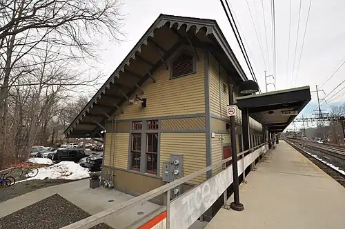 The station was opened in 1884, and the existing westbound and eastbound station buildings were constructed in the late 19th century by the New York, New Haven, and Hartford Railroad.[5] The westbound building is wooden, built in the saltbox-style. The eastbound building is made of brick, and is no longer in railroad use. Instead, it houses a restaurant. The station agent was eliminated on January 15, 1972.[6] In 1989, the station buildings were listed in the National Register of Historic Places as the Southport Railroad Stations.