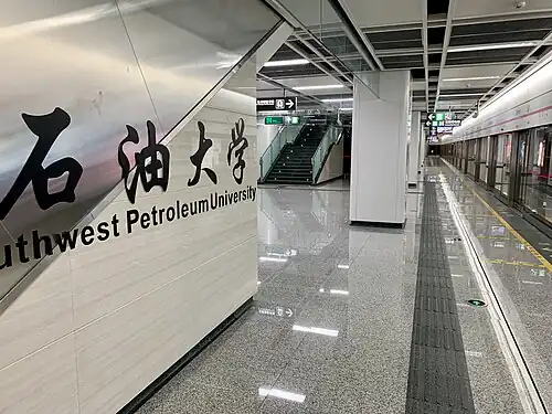 Southwest Petroleum University (Chinese: 石油大学) is a station on Line 3 of the Chengdu Metro in China.[1][2] It serves the nearby Southwest Petroleum University Chengdu Campus.