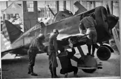 In October 1937, some 450 Soviet pilots and technicians assembled in Moscow, subsequently traveling to Alma Ata to bring 155 fighter aircraft, 62 bombers, and 8 trainers into China. The Soviets arrived as private citizens and initially wore civilian clothing, the mission remaining a secret even from their closest relatives. They were instructed to avoid using the term comrade, and in the event of their capture they were to claim that they were former members of the White movement permanently residing in China. Prior to each mission, the pilots changed into Chinese uniforms, whilst their planes were marked with Chinese Air Force insignia.[4] In 1938 the Group bombed Taipei, the physcial results of the attack are believed to be limited but the propaganda impact was significant.[5]