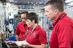 ![]() (l-r) Shkaplerov, Cristoforetti and Virts Soyuz programme (Crewed missions) | |