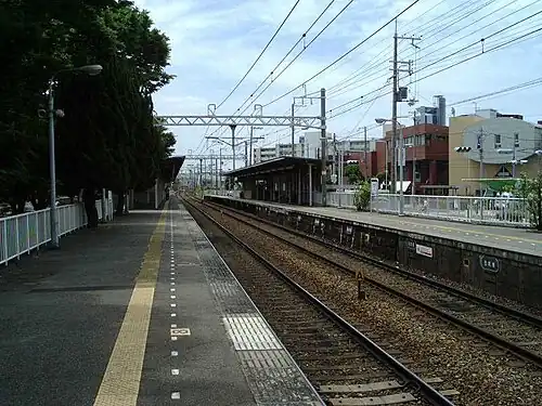 Construction is underway for grade separation. Work is being done as of 2019 to elevate a 3.3 km (2.1 mi) section of the Kyoto Line between this station and Kami-Shinjō Station.[4] Originally planned to be opened by 2020, various delays have resulted in the opening being pushed to 2031.[5]