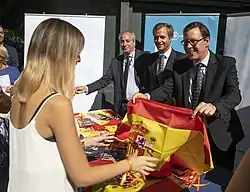 A distinct manifestation of Spanish nationalism in modern Spanish politics is the interchange of attacks with competing regional nationalisms.[8] Initially present after the end of Francoism in a rather diffuse and reactive form, the Spanish nationalist discourse has been often self-branded as "constitutional patriotism" since the 1980s.[9] Often ignored as in the case of other State nationalisms,[10] its alleged "non-existence" has been a commonplace espoused by prominent figures in the public sphere as well as the mass-media in the country.[11]