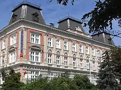 The first Austrian savings bank, as its name indicates, was the Erste österreichische Spar-Casse, which opened on 4 October 1819 in Vienna.[5] Other savings banks were founded in subsequent years on an associative basis (German: Vereinssparkassen) by individuals such as aristocrats, clergy, senior civil servants, or doctors and pharmacists. As a counterweight to private banks, the savings banks were intended as purpose-driven institutions against the impoverishment of the population and as instruments for the accumulation of wealth by the working classes. The Savings Bank Regulation (German: Sparkassen-Regulativ) of 1844 established a framework of government oversight of the savings banks, with a permissive system for Vereinssparkassen and for the newly defined category of municipal savings banks (German: Gemeindesparkassen),[7]: 39 the first one of which was born in 1853. A boom in new savings banks began in 1866, with the number increasing from 26 to 210 in 1910. The model statute of 1872 abolished the previous restriction of savings banks services to "less well-off classes" and the degressive interest rate (the interest rate fell with the level of deposits); they now became "financial institutions of a humanitarian nature" (German: Geldanstalten humanitären Charakters) that could do business with all classes of the population.[8] Savings banks were created in other parts of the Habsburg Monarchy, such as the Laibacher Sparkasse in today's Ljubljana (est. 1820),[9] Cassa di Risparmio di Venezia (est. 1822), Cassa di Risparmio di Milano (est. 1823), Böhmische Sparkasse (est. 1823), First National Savings Bank of Pest (est. 1840), and First Croatian Savings Bank in Zagreb (est. 1846).