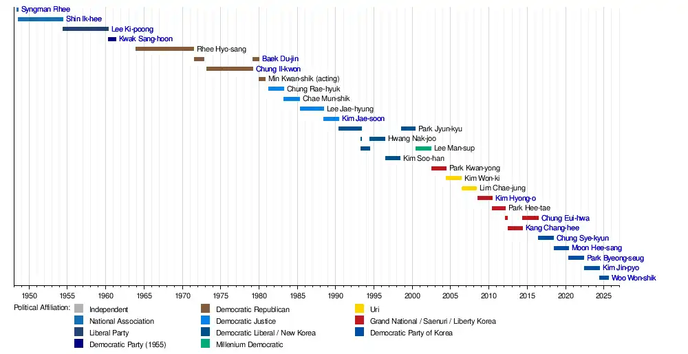 3 August 1998 | 29 May 2000 | 1 year, 300 days | United Liberal Democrats | Jung, Daegu | |