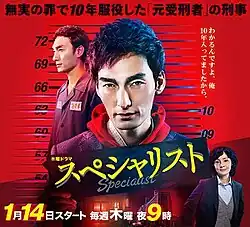 Specialist (スペシャリスト) is a Japanese television drama series that premiered on TV Asahi on 14 January 2016.[1] It was previously aired as Saturday Night drama from 2013 to 2015.[2] In this drama, Tsuyoshi Kusanagi, a member of SMAP, played the lead role, Kaho Minami, Yūta Hiraoka and Natsuna appeared in supporting roles.[3] The first episode received a viewership rating of 17.1%, and its overall average was 12.0%.[4] It was Sei Ashina’s final television role before her death in 2020.