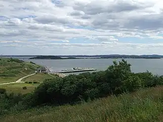 Spectacle Island is a 114-acre (46 ha) island in Boston Harbor,[1] 4 miles (6.4 km) offshore of downtown Boston, Massachusetts. It is part of the city of Boston. The island has a varied history, and today is a public park with a marina, visitor center, lifeguarded swimming beach, and five miles of walking trails,[1] forming part of the Boston Harbor Islands National Recreation Area. It is served all year by ferries from Boston, and on weekends and summer weekdays by a shuttle boat to and from nearby islands.[2][3]